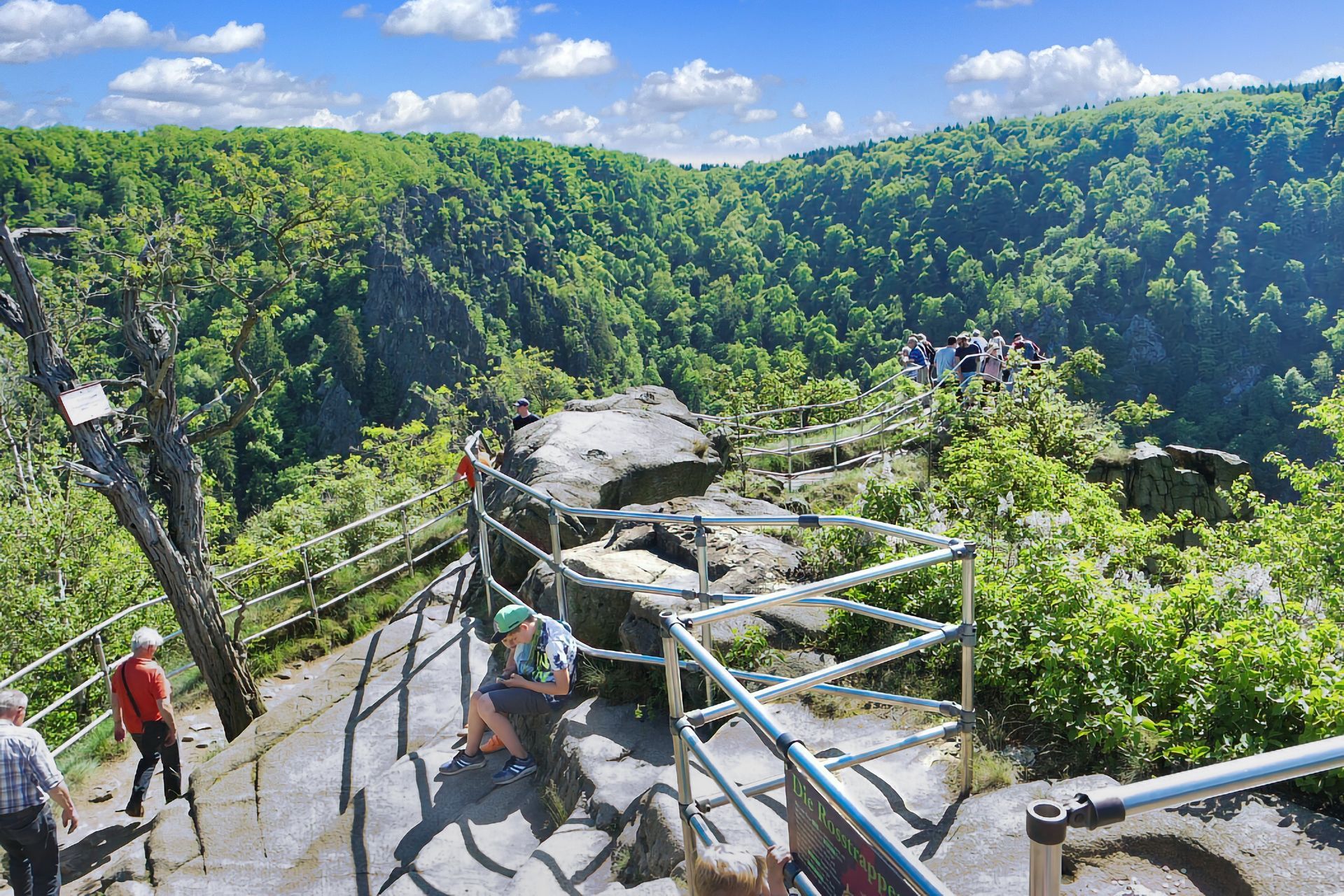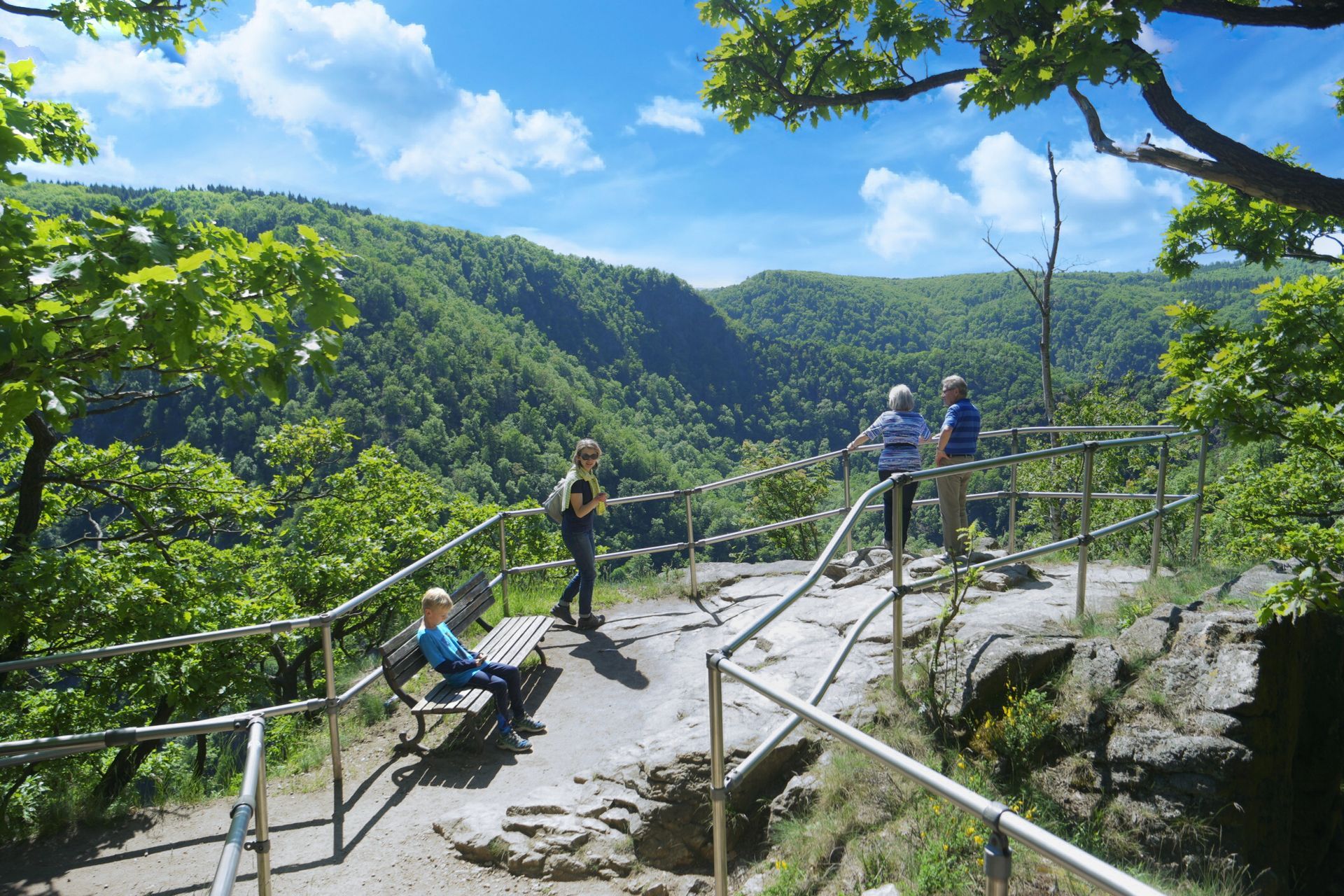 Bad Suderode: kuurpark, bosrestaurant Felsenkeller, stempelpunt: Pruisische Toren, Saalsteine, Panorama Trail,
